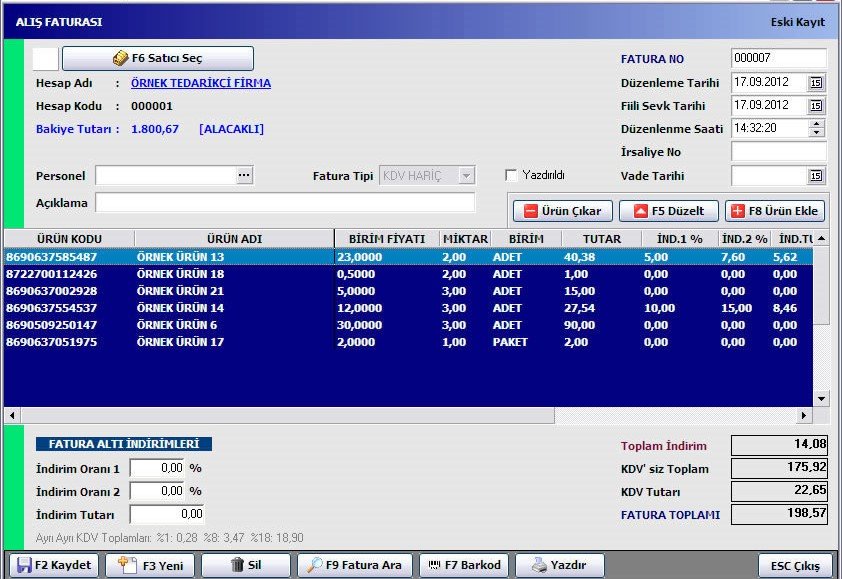 - Program içinde barkod tanımlaması yapılmış 18.000 market ürünü hazır bulunmaktadır. Bu kayıtlar istenildiği gibi düzenlenebilir, yeni kayıt eklenebilir veya mevcutlar silinebilir. (Talep edilirse kayıtlı ürünlerin tümü programdan silinebilir.)