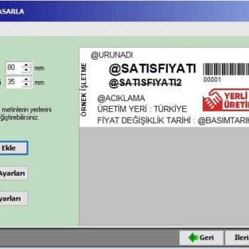 - Barkod Yazdırma modülü ile barkodlu veya barkodsuz RAF/ÜRÜN ETİKETLERİNİZİ tasarlayarak, ister standart yazıcılarda (lazer veya püskürtmeli) ister barkod yazıcılarda isterseniz de pos / fiş yazıcılarda basabilirsiniz. Etiketlerinize yerli üretim logosunu veya istediğiniz başka bir logoyu ekleyebilirsiniz (Uygun pos ve barkod yazıcıları sorunuz.).