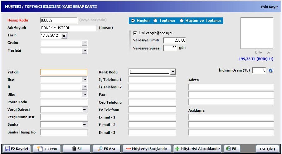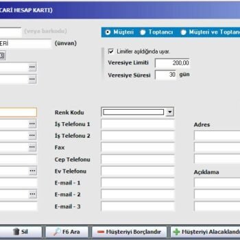- Her müşteri için farklı veresiye limiti belirlenebilir. Satış esnasında bu limit aşıldığında kullanıcı uyarılır.