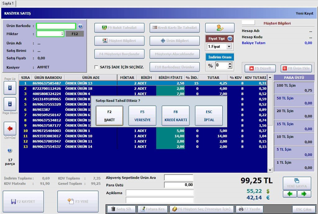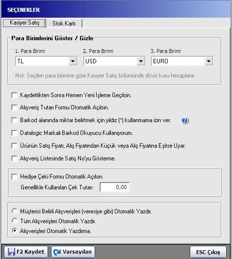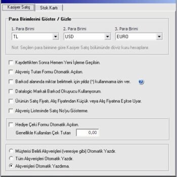 - Eğer isterseniz satış tutarını 16 farklı para biriminden dilediğiniz 3 tanesine dönüştürebilirsiniz. (USD, EURO, STERLİN, MANAT, RUS RUBLESİ, VS.) Kurları siz belirleyebilirsiniz veya internetten alabilirsiniz.
