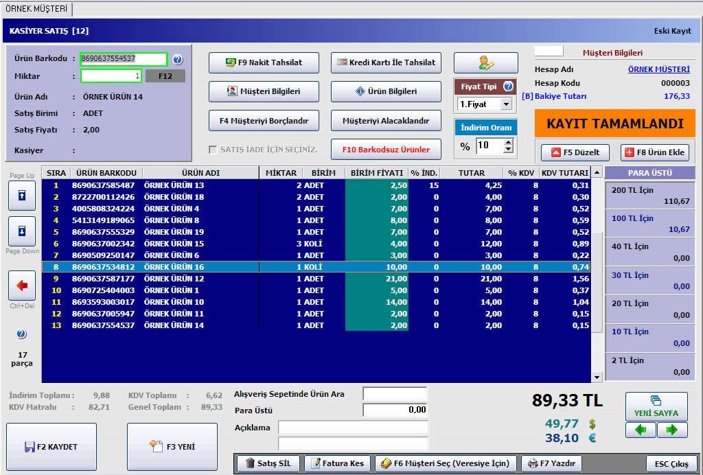 - Her ürün için farklı indirim oranı veya toplam tutar üzerinden İndirim oranı belirleyerek indirimli satışlar yapabilirsiniz.
