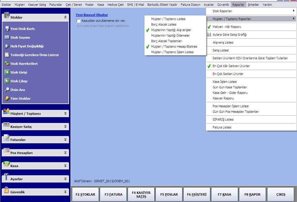 - Size borcu olan ve sizden alacağı olan hesapların (müşterilerin-toptancıların) kapsamlı raporlamasını yapabilirsiniz.